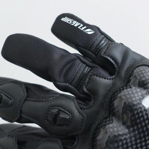 カーボンナックルプロテクター、フィンガープロテクターに加え手首にもプロテクターを装備し、より安全性能を高める。手首のプロテクターはクッションパッドを分割式とすることで操作性を損なわないように設計。
