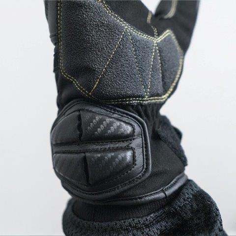 カーボンナックルプロテクター、フィンガープロテクターに加え手首にもプロテクターを装備し、より安全性能を高める。手首のプロテクターはクッションパッドを分割式とすることで操作性を損なわないように設計。