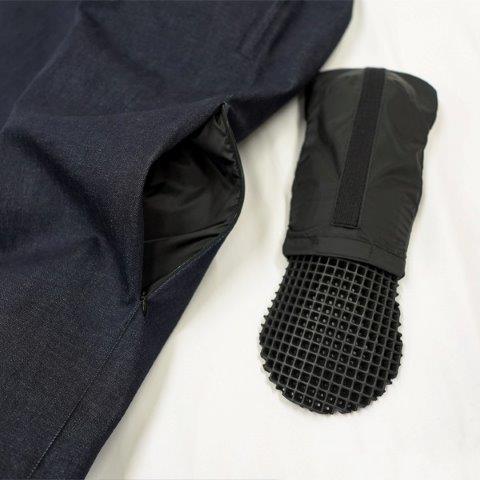 バイク用ながらトレンド感のあるワイドシルエットジーンズ。防風加工を施したデニム生地に中綿を封入、さらに裾から冷気が侵入するのを防ぐストームガードを装備し最高の防寒性能を誇る。便利なファスナーポケットも備え冬のストリートライディングを快適&スタイリッシュに!