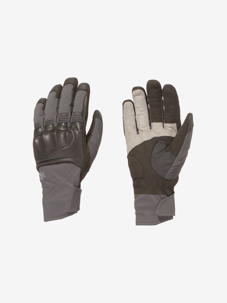 バイク競技用グローブなどにも使われるナノフロント素材を使ったコントロール性重視のグローブです。人工皮革とナノフロントを組み合わせ、各所素材を切り替えることで、ダイレクトな操作感を得ることができます。スマホタッチにも対応しており、ショートツーリングからワインディングを走る際など短時間でライディングを楽しむシチュエーションにおすすめです。 掌側には人工皮革とナノフロント素材を使用し、ウレタンシートを内蔵。甲側はゴートレザーをベースにプライムフレックスを使用し、必要箇所に応じて素材を切り替えて使用しています。ライディング時一番力のかかる小指と薬指の付け根部分にナノフロント素材を採用することで滑りを軽減。汗や水などで濡れると更にグリップ力が増していきます。グローブ内部に防風、防水透湿素材であるモトランスをインサートしているため、万が一の雨でも内部まで浸水せず、走行風も防いでくれます。ナックル部分にはCE規格のナックルプロテクターを内蔵。グローブに直接縫い付けるのではなくフローティングさせているため、動きを妨げることなくプロテクションが可能です。