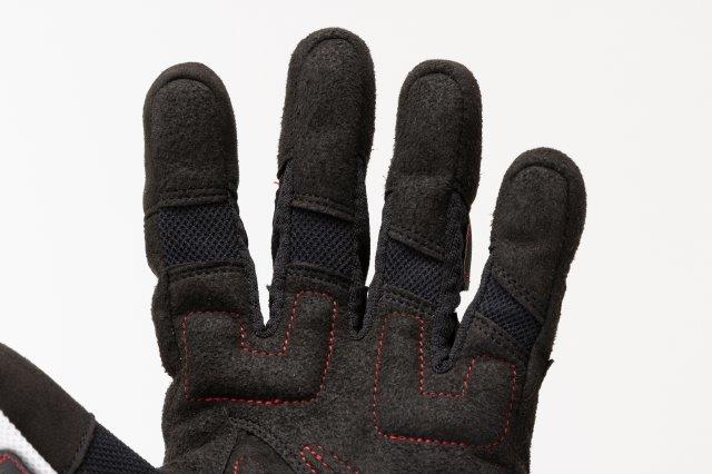 【素材】 (甲側)マーバスメッシュ+合成皮革+硬質プロテクションカップ (掌側)人工皮革+マーバスメッシュ+アンチバイブレーションフォーム (指側面)メッシュ+合成皮革