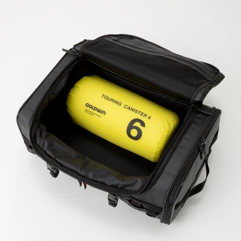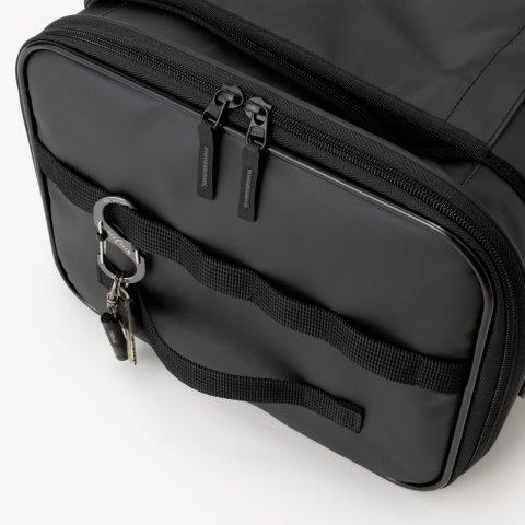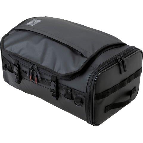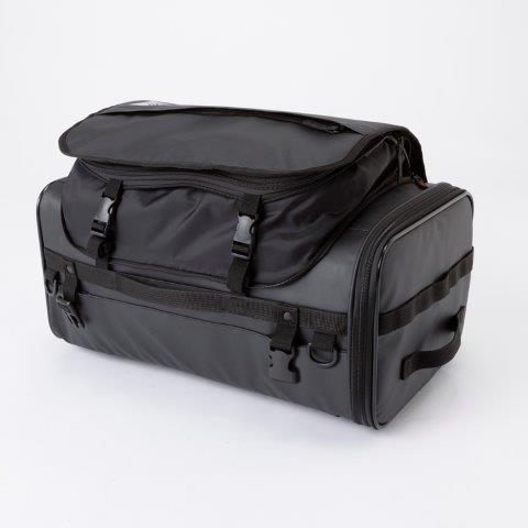 付属のXベルトによりバイクのリアシートに積載でき、バック上面に大きな開口部を設けることで日常使いの荷物だけでなく、キャンプなどで使う大柄な荷物も入れることが可能です。また上面開口部のフラップには外側両サイドにファスナー付きポケットを装備。内側にもファスナー付きポケットを装備することで、荷解き前にすぐに取り出したい小物などを収納可能です。積載した状態でも荷物の出し入れをスムーズに行えるよう側面にも開口部を設けています。上部開口部に可変式のマチを使用することで最大32Lまで容量を拡大して使用することができます。