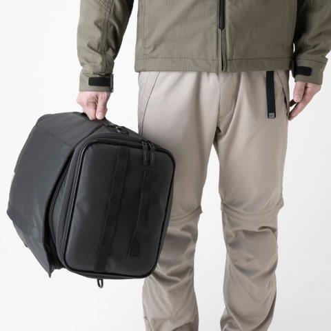 目的地に到着してバイクから離れる際は車体から取り外し、底部のスリットからショルダーベルトを取り出すことで背負って移動することが可能です。ロングツーリングやキャンプツーリングでの使用はもちろん、バイクを使った移動時におすすめです。
