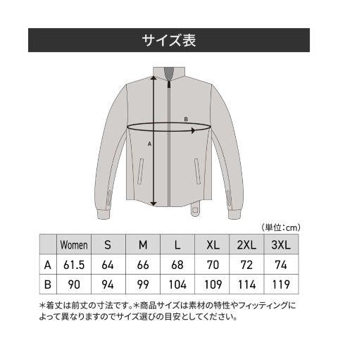 ・アウターグローブとインナージャケットを接続しご利用になる場合は、 インナージャケットの袖丈・袖口から伸びるコードの長さ(約15cm)を考慮いただき、サイズをお選びください。