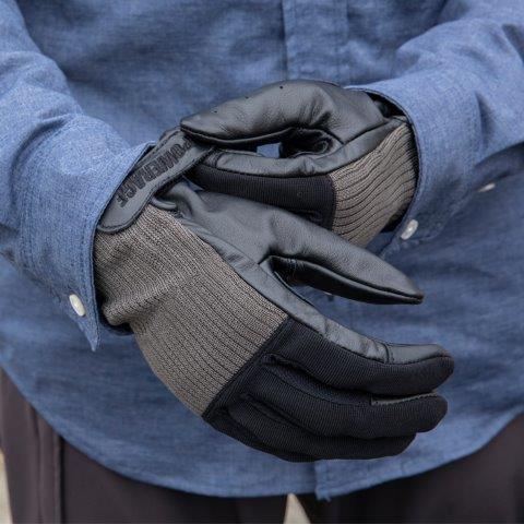 まるで素手のような自然なはめ心地と、抜群の風抜けが自慢のグローブ。甲側は通気性とストレッチ性の高いリブメッシュ素材、指の股は通気性の高いのメッシュ素材、掌側は牛革を用い、吸い付くようなグリップ感を実現しました。POWERAGE独自のバイク専用立体構造で、カジュアルな見た目からは想像つかない抜群のフィット感。グリップに手を添えればわずかな力で自然と握りこめ、長時間のライディングでもストレスフリーです。ナックル、掌側手首付け根に衝撃吸収素材「PORON®XRD®」を内蔵。スマートフォン操作にも対応しています。