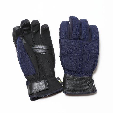 繊細な織りが特徴のヘリンボーン素材を使用した防寒グローブ。冷気を感じやすい手首回りにはボアを配置しました。掌側の摩耗しやすい箇所に耐久性に優れるゴートスキンを配置。甲側は防水・透湿・超撥水性のある素材。グローブ内をあたたかくドライに保つ防水透湿フィルムを掌側内側に接着している為、グリップ操作時のイヤなズレを防止します。POWERAGE独自のバイク専用立体構造でグリップに手を添えればわずかな力で自然と握りこめ、長時間のライディングでもストレスフリー。ナックル・掌側の手首付け根&指の付け根に衝撃吸収素材「PORON®XRD®」プロテクターを内蔵。グリップヒーター、スマートフォン操作にも対応。上質生地を活かした紳士スタイルで、街中にも自然と溶け込むデザインのグローブです。