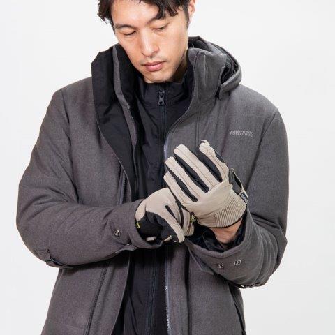 やわらかく軽いはめ心地が自慢の防寒グローブ。掌側の摩耗しやすい箇所に耐久性に優れるゴートスキンを配置。甲側は撥水性のある高ストレッチのソフト素材。内蔵の防水透湿フィルムが冷気の侵入を防ぎ、グローブ内をあたたかくドライに保ちます。POWERAGE独自のバイク専用立体構造で、グリップに手を添えればわずかな力で自然と握りこめ、長時間のライディングでもストレスフリー。掌つけ根に衝撃吸収素材「PORON®XRD®」プロテクターを内蔵。グリップヒーター、スマートフォン操作にも対応しています。軽く、やわらかく、自由な動きを叶えるグローブ。中綿量を調整することで、シーズン初めから着用可能に仕上げました。