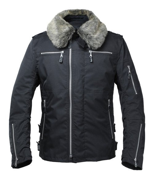 非常に高い防寒性と、動きやすくカジュアルな着こなしが楽しめるPOWERAGE冬の人気モデル。アウターは防水・透湿素材、フロントは3重構造で冷気の侵入をシャットアウト。ファー付きの襟を立てることで首元からの冷気の進入を遮断します。脱着式防寒インナーは中綿×なめらかな肌触りのボアの組み合わせで、保温性に非常に優れています。バイク用立体構造×ストレッチ素材で運動性も抜群。脱着可能な襟のファーとインナーを外せば春先まで大活躍。バイクでも街中でもワインディングでも。真冬はもちろん春でも秋でも着られる万能な一着です。