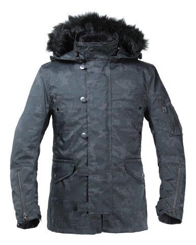 ミリタリージャケット「N-3B」をモチーフとしたライディングジャケット。ロング丈で冷えやすい腰回りをしっかりカバー。3重のフロントフラップ構造とウエストゲーターが正面から受ける冷気の侵入をシャットアウト。中綿×なめらかな肌触りのボアが特徴の極暖インナーと合わせれば、真冬の寒さも気にならないあたたかさ。フロントは逆開ファスナーを採用。裾部分を少し開ければ乗車時ウェアのずり上がりを軽減したり、ボトムスへのアクセスを容易にします。フロントボタン下2つにはタンク傷つき防止カバー付き。インナーを外せば春先まで大活躍。普段の防寒着としても使える一着です。