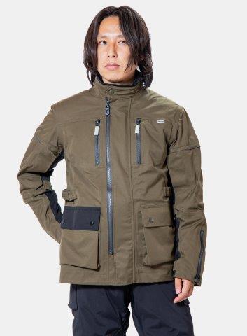 アドベンチャーライドに対応する本格仕様のライディングジャケット。防風・防水・透湿・超撥水の実用素材に、シームテープ加工を施した防水仕様で、天候の変化にも柔軟に対応します。フロントは防風、防水性能を高める2重フラップを採用。内側には、軽くてやわらかな着心地のボアインナーを装備。脱着式で単体着用もでき、寒さやシーンに合わせて柔軟に使い分けが可能です。脇と背中にはベンチレーションを配置し、ムレを逃して快適性もキープ。冷え込みが強い日には、ウエストゲーターで裾からの風の侵入も防げます。ウエストベルトでフィット感を調整でき、長時間の走行でもバタつかず快適。腕にはリフレクターを備え、夜間の視認性も確保します。ラフに見えて、しっかり使える。まさに走りを楽しむための一着です。