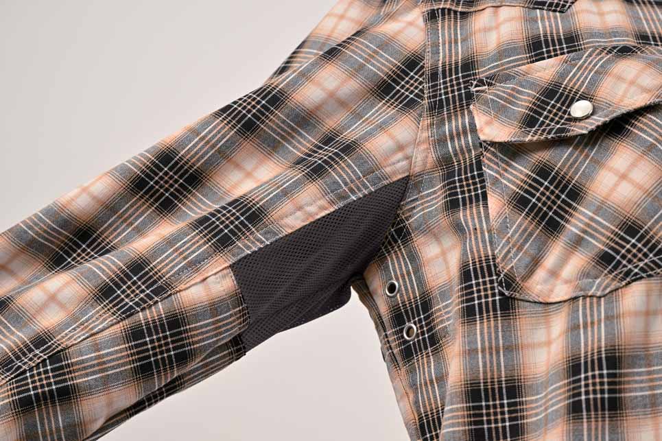 ・肩、肘、脊椎オリジナルプロテクター標準装備・胸部プロテクター標準装備・後付け胸部プロテクター取り付け用マジックテープ装備・脇部をメッシュ素材に切り替え、通気性抜群・「L+」はRossoStyleLab独自の規格です。・「L+」はLLサイズに相当します。