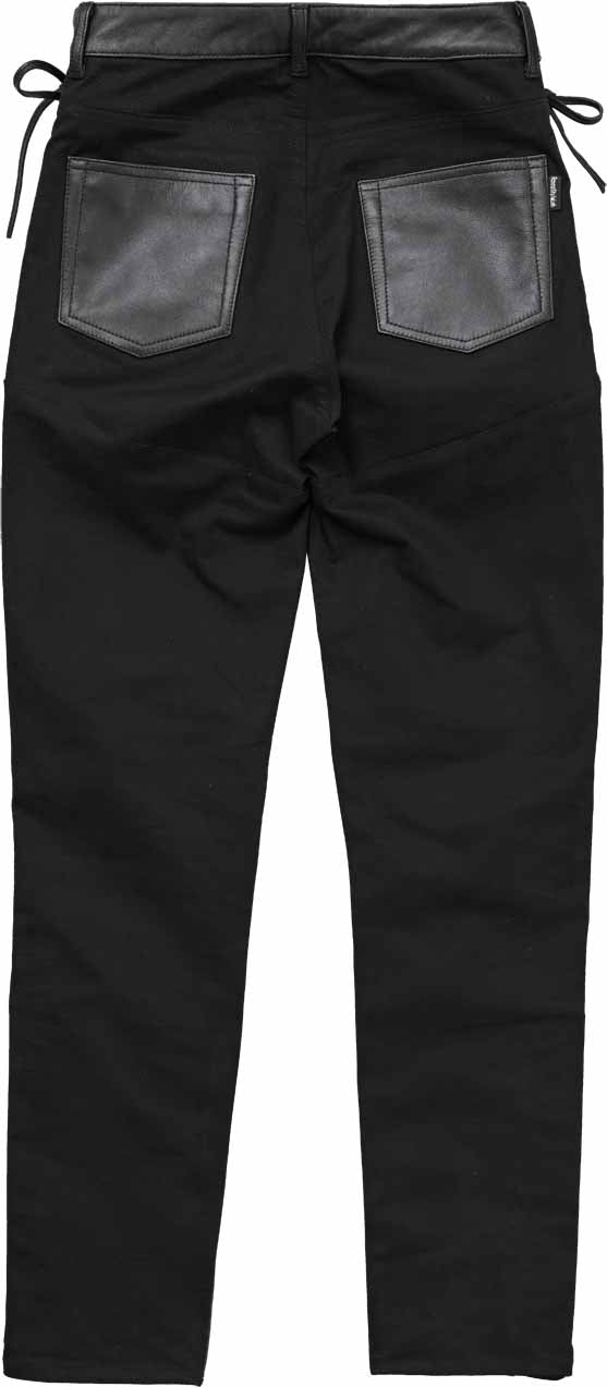 ・両腰編み上げデザインのライディングレザーパンツ