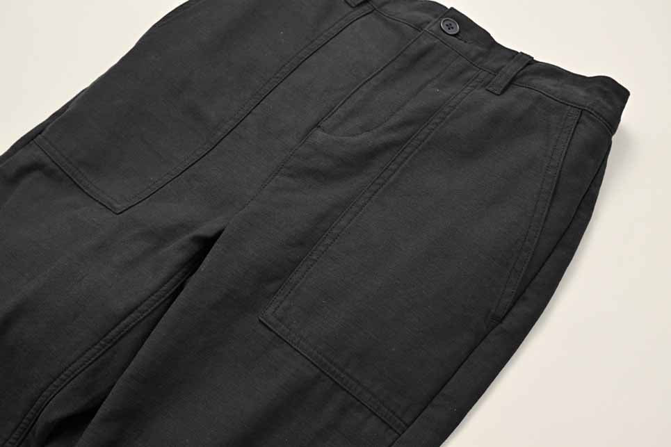 ・腰回りや太ももにゆとりがあり、後ウエストゴム仕様でリラックス感のあるパンツ
