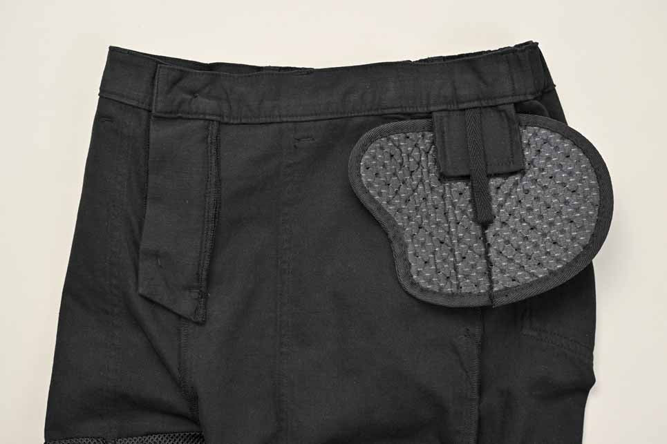 ・ゆとりある履き心地とすっきりとした足元のテーパードシルエットのライディングパンツ