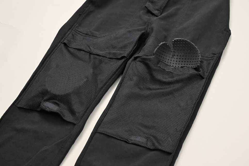 ・ゆとりある履き心地とすっきりとした足元のテーパードシルエットのライディングパンツ