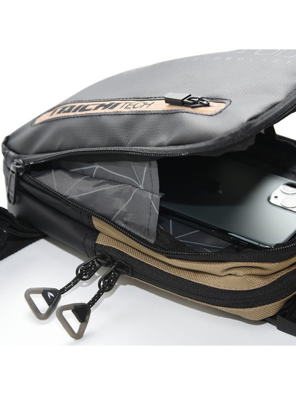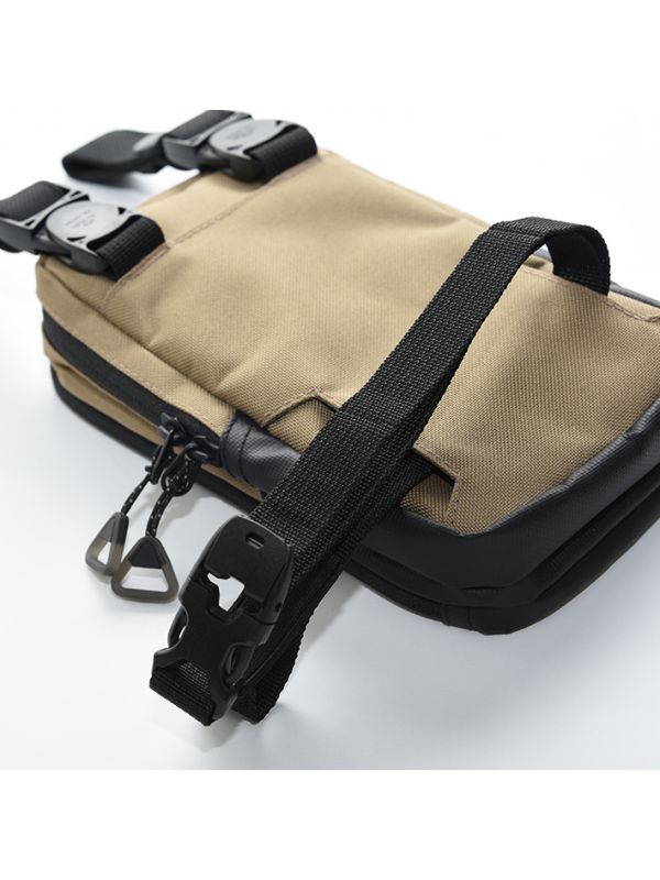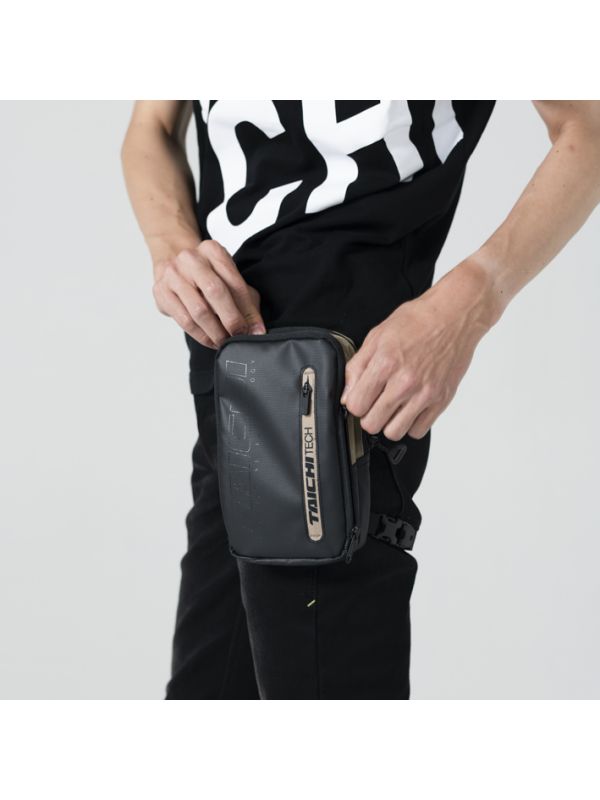 付属ベルトにより、ショルダー・ウエスト・レッグポーチとして使用可能な、3way仕様の多機能ポーチ。