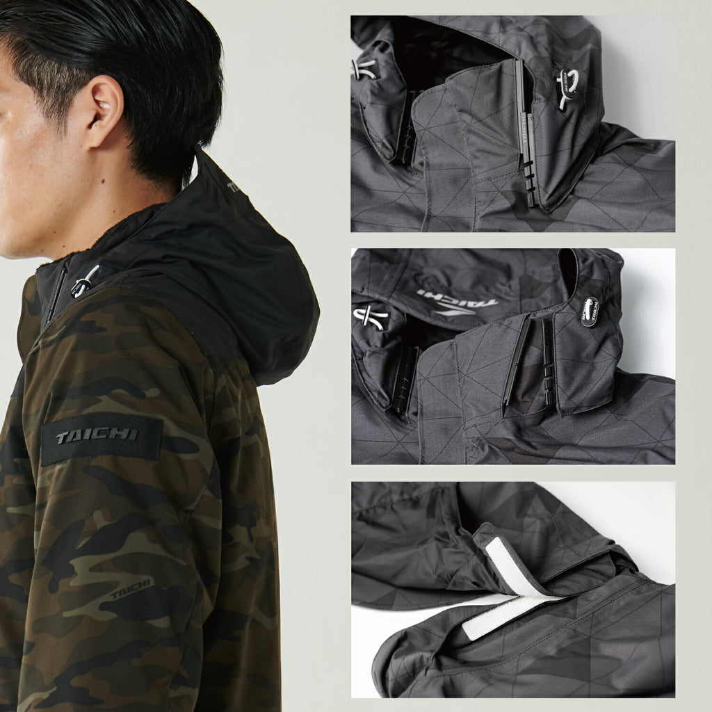 防水機能とプロテクション等のライディング機能を兼ね備えた、タウンユースにも適したカジュアルウィンターパーカ。急な雨に見舞われた際にも安心してご使用いただけます。