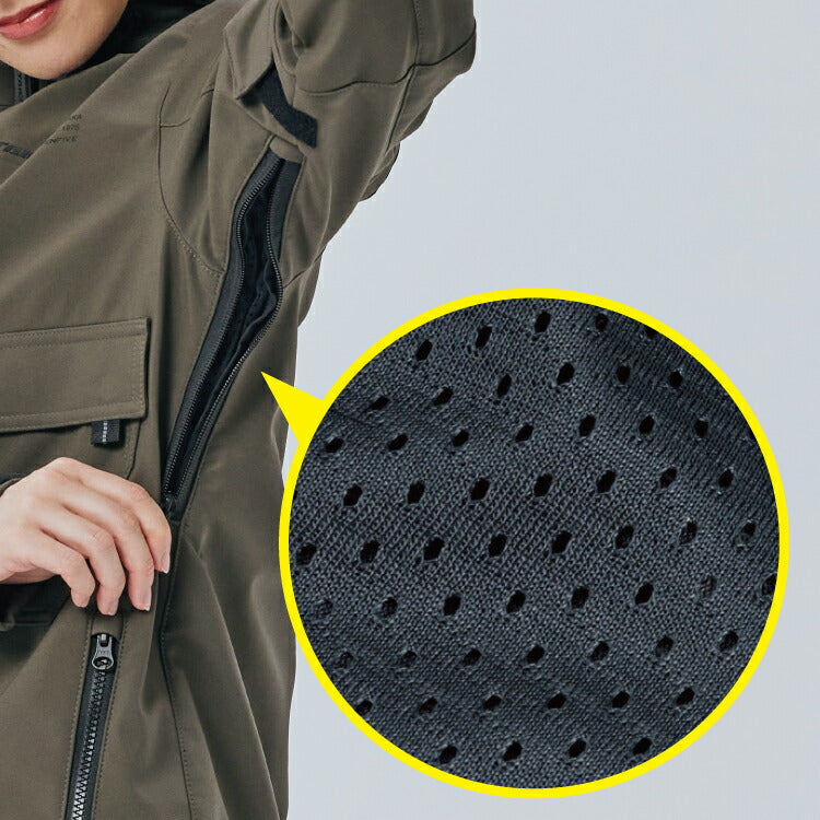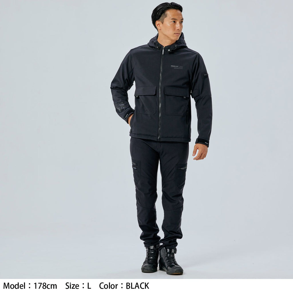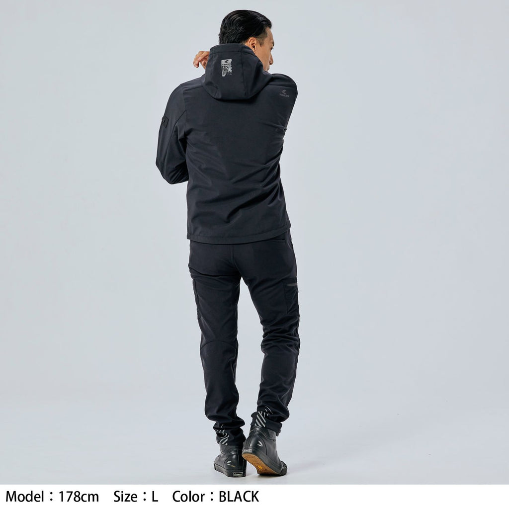 保温性をもつソフトシェル生地に吸水・速乾性に優れるメッシュ内装を組み合わせた、春や秋などのツーリングシーズンにぴったりな防風軽量モデル。 肌寒い時期にはe-HEATやウォームライドシリーズ等のインナーと組み合わせることで、幅広いシーズンでの着用が可能です。