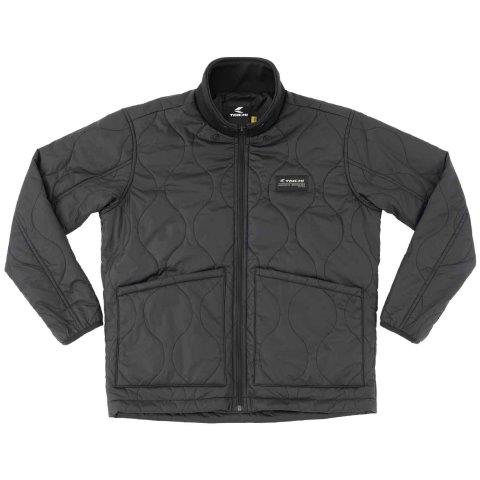 プロテクター内蔵のアウターと保温力をもつ中綿入りインナージャケットの二重構造で、気温やシーンに合わせてそれぞれ単体や組み合わせた着用が可能です。インナージャケットの首元リブには防風フィルムをインサートし、走行中はハイネックスタイルで風の侵入を抑え、降車後は襟を寝かせた着こなしで、それぞれ違ったスタイリングを楽しめます。