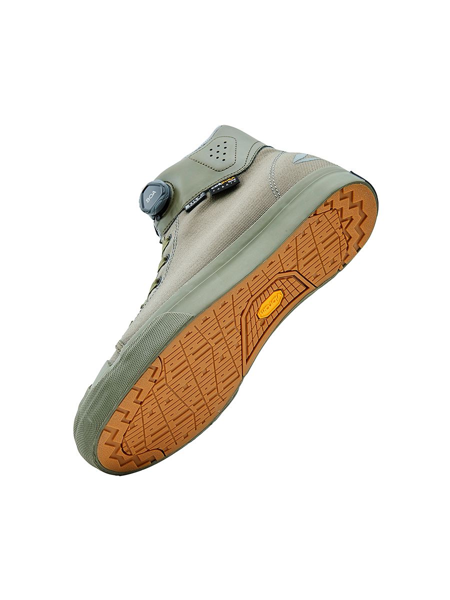 ソールにはvibram社との共同開発により、ライディングに必要と考えられるグリップや排水性を考慮したハイグリップソールを採用。