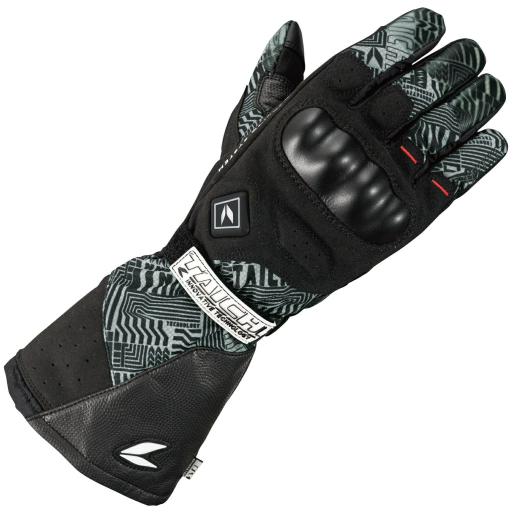 ハードタイプのナックルプロテクターを採用した、遊び心のあるカジュアルなグラフィックデザインの電熱グローブ(ロングカフタイプ)。発熱ユニットは、指先と手の甲に配置しています。