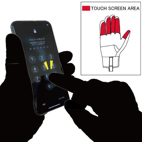10本すべての指先がタッチパネル対応となっており、グローブを装着した状態でもスマートフォンをはじめ、ナビやガソリンスタンドの液晶パネルなどの操作が可能です。