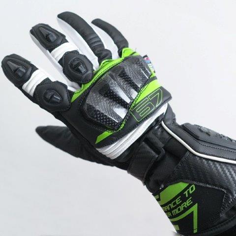 カーボンナックルプロテクターを特許技術のフローティング仕様とすることで高いプロテクション性能と良好な操作性を実現。ロング丈に2本ベルトでさらに手首から冷気の侵入を防ぐ。