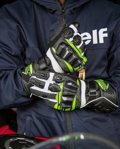 カーボンナックルプロテクターを特許技術のフローティング仕様とすることで高いプロテクション性能と良好な操作性を実現。ロング丈に2本ベルトでさらに手首から冷気の侵入を防ぐ。