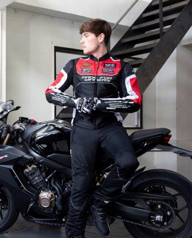 [肩][肘][背中][胸部]にプロテクターを全て標準装備とし高水準の安全性能を誇るスポーツライディングジャケット。