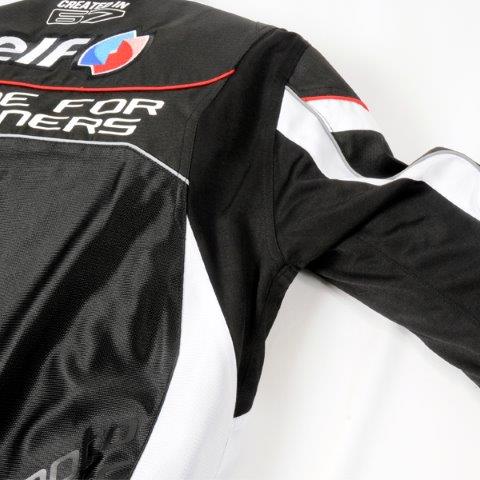 [肩][肘][背中][胸部]にプロテクターを全て標準装備とし高水準の安全性能を誇るスポーツライディングジャケット。
