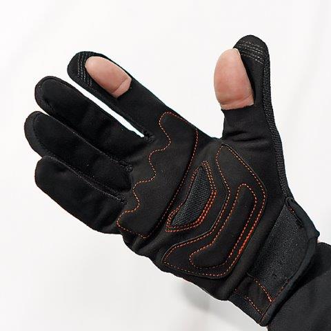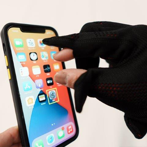 親指と人差し指にはグローブを装着したまま指が出せるスリットを採用し、確実なスマホ操作が行える。手首のベルクロを無くし素早い着脱を実現。