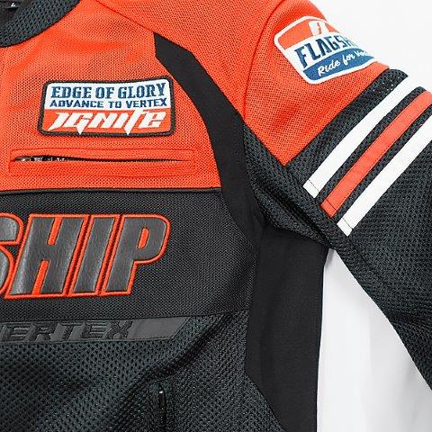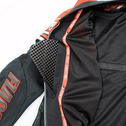 フラッグシップらしいワッペンや刺繍等を用いた独特な存在感は、レースシーンを彷彿とさせるデザインに仕上げられ、タフなメッシュ生地、可動部には効率的に配置したストレッチ生地で構成。さらに肩肘にCEレベル2規格のプロテクター、胸部と背中にエアスループロテクターを装備し、安全性にも配慮。まさに[ACER]尖ったエースの名を冠した1着。