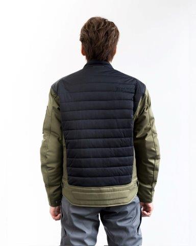 見頃と袖で素材を変える事で重ね着感を演出。軽快な着心地を追及し中綿を少な目としながら生地には防風加工を施す事で真夏と真冬を除く中間シーズンを快適に過ごせるように設計されたジャケット。