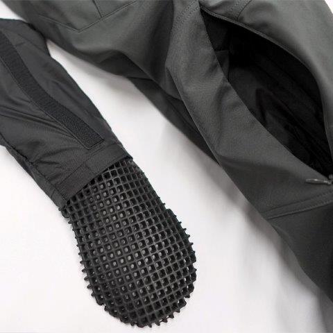 軽量で防風性とストレッチに優れた生地に中綿を封入し動きやすさと防寒性能を両立。全部で8個のポケットにより高い利便性を有します。膝と腰のプロテクターはベルクロで無段階に位置調整ができ着脱も用意です。