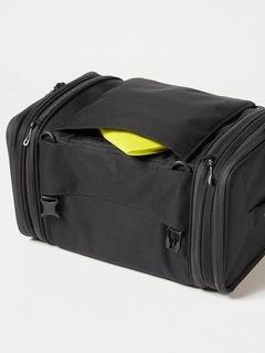 車体に取り付けるだけでなく、出先ではリュックとして背負って移動できるシートバッグです。容量可変システムにより22L~25Lに拡張可能。日帰りツーリングなどでも便利に使うことができますが、バイクで街を移動する際や、出先でバイクを停めて歩くときなど、ツーリング以外でも活躍するリュック型シートバッグです。 耐水素材の600デニールリサイクルポリエステルを使用。開口はファスナー式となっていて、上面とサイド片方が開口するため長物や大きな荷物も収納することができます。バッグ上面に容量可変のマチを設けており、3Lの容量拡張が可能です。出先で万が一荷物が増えた際などにも対応しています。バッグ背面にはショルダーストラップが取り付けられており、車体から取り外して背負って持ち歩くことができます。バッグ側面にレインカバー専用スリットを配置し、付属の専用レインカバーを使用することで突然の雨にも対応しています。レインカバー自体にもベルトが装着され、バッグと連結することで脱落・紛失防止に貢献しています。バッテリーからの電源ケーブルやモバイルバッテリーのケーブルを内部に引き込む事ができるケーブルスリットを装備。バイクのバッテリーからの電源ケーブルを引き込んで内部で充電する場合や、内部のモバイルバッテリーのケーブルを外に出して充電しながら使うことも可能です。 シートバッグとリュック両方の使い方ができるため、ツーリング時はもちろんですが、日常的にバイクでの移動が多い方にもおすすめのバッグです。