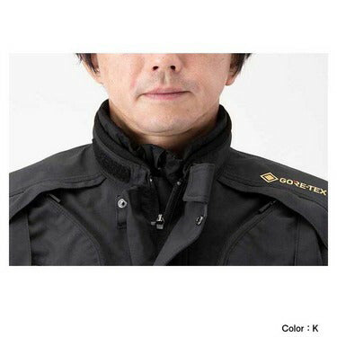 「防水」と「換気」機能を備えた高機能素材、ゴアテックスを使用したツーリングジャケット。