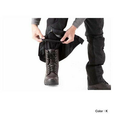 「防水」と「換気」機能を備えた高機能素材、ゴアテックスを使用したツーリングパンツです。