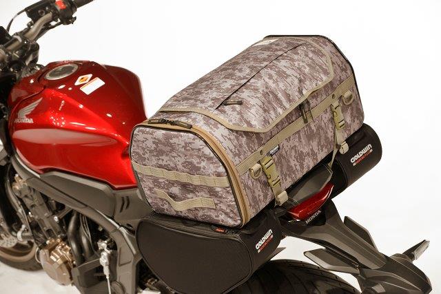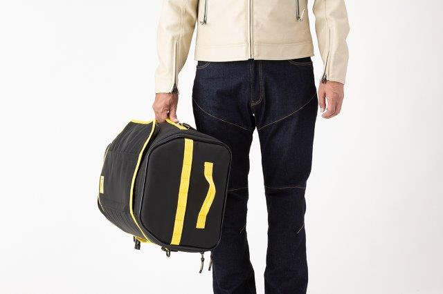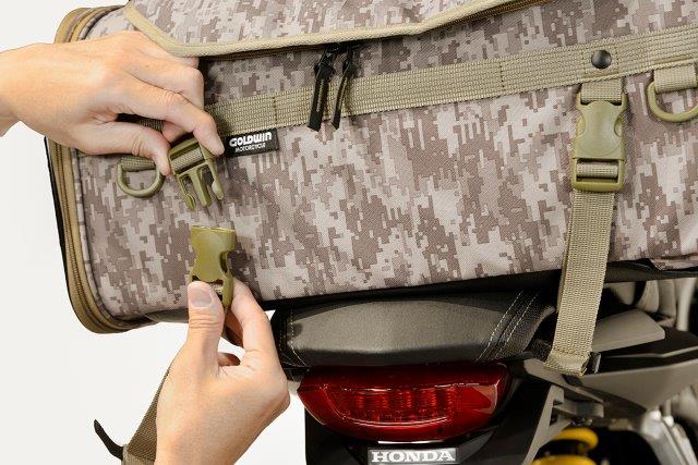 カジュアルシーンで人気のボックスリュックタイプのリアバッグ。上部とサイドからのアクセスは、キャンプ道具などの長いモノや大きなモノの積載にも適しています。シートへの取り付けはXベルトで3ステップの簡単装着が可能です。