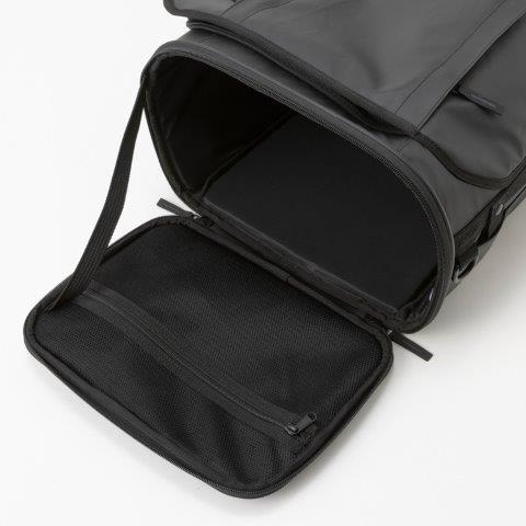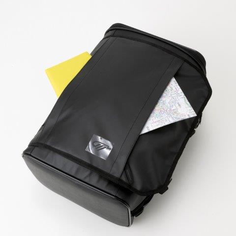 付属のXベルトによりバイクのリアシートに積載でき、バック上面に大きな開口部を設けることで日常使いの荷物だけでなく、キャンプなどで使う大柄な荷物も入れることが可能です。また上面開口部のフラップには外側両サイドにファスナー付きポケットを装備。内側にもファスナー付きポケットを装備することで、荷解き前にすぐに取り出したい小物などを収納可能です。積載した状態でも荷物の出し入れをスムーズに行えるよう側面にも開口部を設けています。上部開口部に可変式のマチを使用することで最大32Lまで容量を拡大して使用することができます。