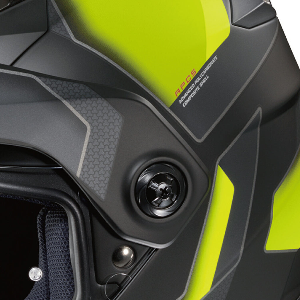 ・マウスベントにはシャッター機能を装備しサイドのエアインテークと合わせ息苦しさ、シールドの曇りを軽減