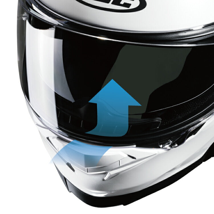 ・口元にあるロアインテークから取り入れた走行風をシールド内側に流すことで、シールドの曇りをやわらげます。
