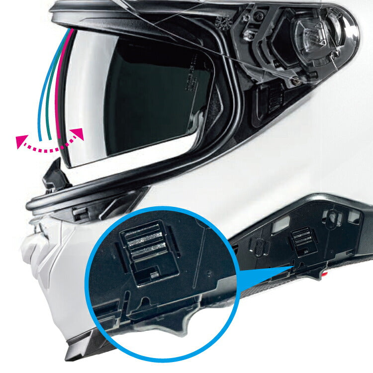 ・グローブ装着時でもスムーズなシールド開閉操作を可能にするシールドロック機構を採用。