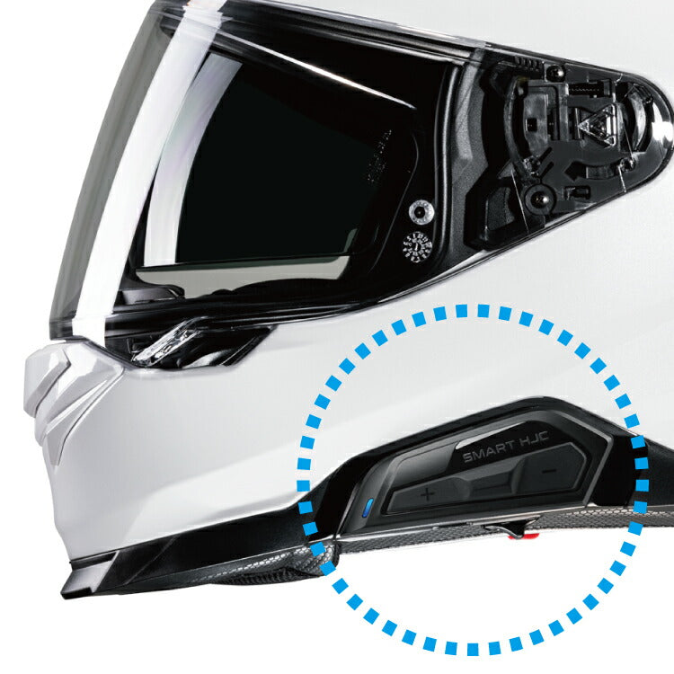 HJCヘルメット専用設計インカム“SMART HJC 21B & 50B”(別売り)のビルトイン機構を装備し、インカム装着時もヘルメットのデザインや空力性能を妨げることなくツーリングを楽しめます。