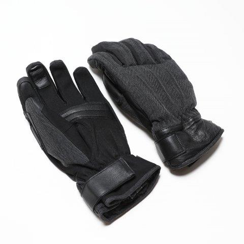 繊細な織りが特徴のヘリンボーン素材を使用した防寒グローブ。冷気を感じやすい手首回りにはボアを配置しました。掌側の摩耗しやすい箇所に耐久性に優れるゴートスキンを配置。甲側は防水・透湿・超撥水性のある素材。グローブ内をあたたかくドライに保つ防水透湿フィルムを掌側内側に接着している為、グリップ操作時のイヤなズレを防止します。POWERAGE独自のバイク専用立体構造でグリップに手を添えればわずかな力で自然と握りこめ、長時間のライディングでもストレスフリー。ナックル・掌側の手首付け根&指の付け根に衝撃吸収素材「PORON®XRD®」プロテクターを内蔵。グリップヒーター、スマートフォン操作にも対応。上質生地を活かした紳士スタイルで、街中にも自然と溶け込むデザインのグローブです。