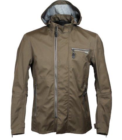 防風・防水・透湿・超撥水素材にシームテープ加工を採用したオールシーズン対応の防水パーカー。ツーリングやアウトドアシーンで活躍する一着として、雨風をしっかりブロックしつつ、ムレにくく快適な着用感を実現しました。裏地を必要としない3レイヤー構造により、着ぶくれせず軽やか。一枚仕立てのシンプルさが、着心地の良さや動きやすさにつながっています。バイク専用に設計された立体構造が、走行時の姿勢に自然にフィットし、ストレスのないライディングをサポート。脱着可能なプロテクター内蔵の裏地を備え、取り外せばタウンユースやマウンテンパーカーとしても着用可能。ムレを逃がす後脇のベンチレーションやフード脱着機能、バタつきを抑えるボタンなど、ライダーの使い勝手を配慮した機能もしっかり装備。「いつでも快適に着られる」一着を求めるライダーにおすすめの、本格防水パーカーです。