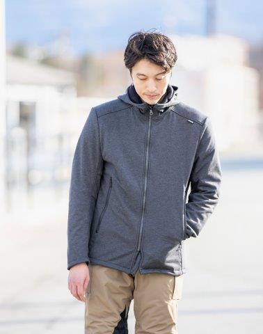 ライトな着心地と防寒性を兼ね備えた防風パーカー。防水・透湿性能を持つ、軽くやわらかい防風素材を使用。裏地は起毛素材のため、体温で暖められた空気をしっかりキャッチし、衣類内部の温度をキープ。さらに、フロント部分に止水ファスナーを採用することで、ファスナー部分から漏れ入ってくる風も遮断し、身体をあたたかく守ります。プロテクター付きなので、少し寒くなった秋口はこれ一枚で安心。季節が進むにつれ、中にインナー等を着るもよし、インナープロテクターとして使用するもよし。素材、デザインともにまさに普段着のような仕上がりは、バイクだけでなく日常使いでも違和感がありません。秋~春まで多彩に活躍する、マルチユースな一着です。