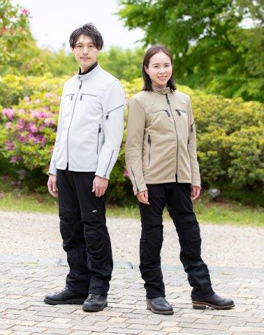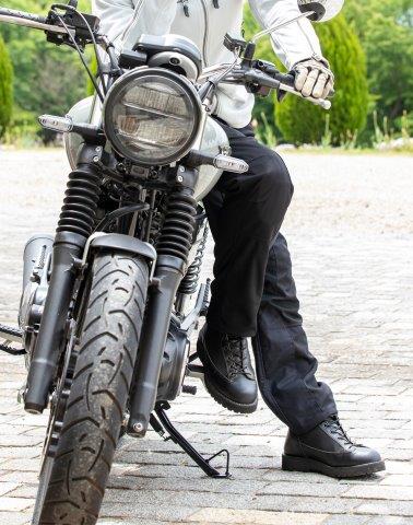 春夏ラインナップ中、最も高い通気性を誇るメッシュ素材を採用したパンツ。マットな質感で、ごわつきがないのが特徴の素材は、やわらかく、ストレッチ性があり、驚くほど軽く、速乾性に優れ、さらりと爽快な肌触り。独自のバイク専用立体構造はウエストずり下がりを軽減し、ストレッチ性も相まって、より脚上げしやすく、運動性抜群。両足のヒートガード(耐熱素材補強)がマフラーの熱から守り、安心快適なライディングを楽しめます。膝には絶妙なホールド感でロングライドでも疲れにくい、ニーグリップをサポートするあて布を装備。圧倒的な風抜けと軽さで、真夏を快適に走れる一着です。