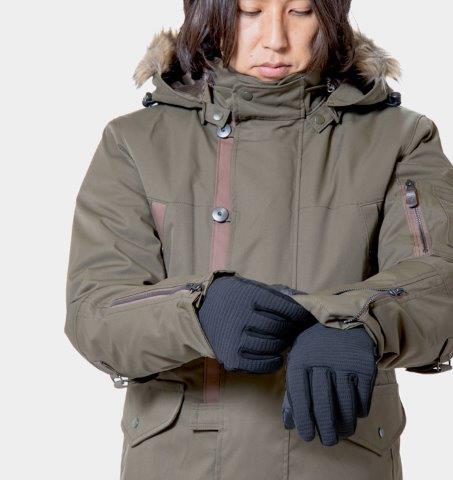 軽さと操作性、そして冬に必要なあたたかさを兼ね備えたライトウインターグローブ。掌側には、やわらかく手になじむ素材を使用し、各所に滑り止めを配置。グリップをしっかりととらえる高い操作性を実現しています。甲側には中綿入りのソフトシェルを採用し、やわらかな着け心地とともに、撥水性・防風性・適度な保温性を確保。さらに、防水透湿フィルムを内蔵することで雨や冷気の侵入を防ぎ、冬場の不意な天候変化にも対応します。