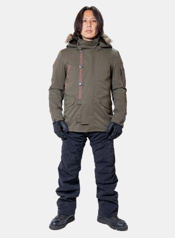 ミリタリージャケット「N-3B」をモチーフにしたロング丈のライディングジャケット。冷えやすい腰回りをしっかりカバーし、3重のフロントフラップ構造とウエストゲーターが走行時の冷気の侵入を防ぎます。中綿×なめらかな肌触りのボアが特徴の極暖インナーと合わせれば、真冬の寒さも気にならないあたたかさ。フロントには逆開ファスナーを採用し、裾のずり上がり軽減やボトムスへのアクセスにも配慮しました。フロント下部のボタンにはタンク傷つき防止カバー付き。インナー脱着でロングシーズン対応し、街使いにもなじむ一着です。