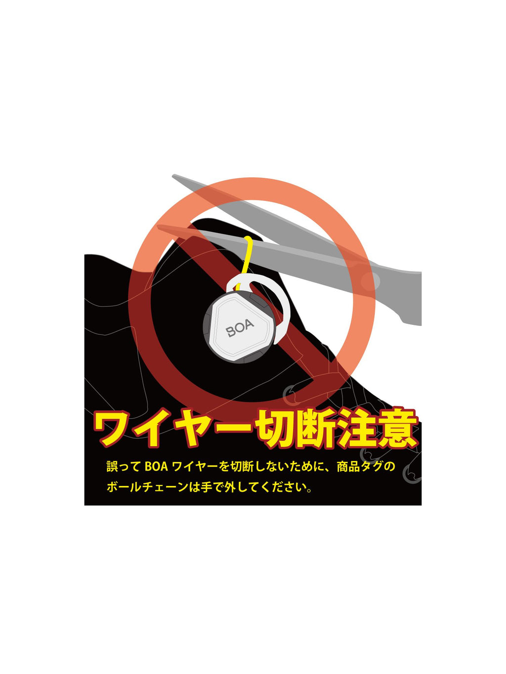 着脱のしやすさと優れたフィット感を実現するBOAフィットシステムを採用。くるぶしまで覆うハイカットタイプで、転倒時でもシューズが脱げにくい仕様に。シューズ内外に配置されたプロテクターが足への衝撃を軽減します。